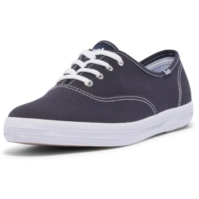 TIMELESS STYLE – Confidently step out in style with the iconic Keds Champion Lace Up Canvas Sneakers for women. Whether you’re at work or running errands, the cotton canvas upper on these lace up navy sneakers for women provide the perfect fit. ALL-DAY COMFORT – With a soft, breathable twill lining, these women’s Keds sneakers ensure your feet stay comfortable all day long. Plus, the flexible rubber outsole on these navy Keds offer maximum traction and stability while walking. VERSATILE DESIGN - Effortlessly dress up or down every outfit, thanks to the versatile footwear design. Our navy canvas sneakers for women offer superior support for your feet with a 10% recycled PU foam Softerra footbed, so you can keep going. DURABLE QUALITY – Made with quality materials, our canvas shoes are built to last. These Keds sneakers for women have a cushioned Ortholite insole that helps to move moisture away from your feet to keep them cool & dry. Care is easy: spot wash & air dry. WEAR YOURS - The very definition of a classic sneaker, the Keds Champion Sneaker has been a wardrobe staple since its debut in 1916. With its goes-with-everything style and up-for-everything comfort, it’s the kind of sneaker you reach for again and again. *Please note - Depending on inventory levels, you may receive product with slightly different labels. Rest assured, this is not a mistake—they are still the classic blue label sneakers you know and love.
