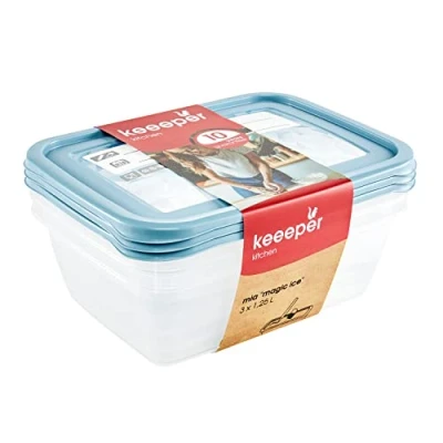 keeeper 3 Piece Freezer Storage Box Set With Erasable Write On Lid, x 1.25 Litre, 20.5 15.5 6.5 cm, Mia Magic Ice, Nordic Blue