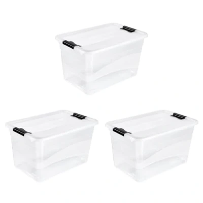 For more order in the household: transparent storage box with lid - ideal for storing and sorting hobby items, decorations and other small items Reliably closable thanks to sturdy lid with side sliding closures, easy to find stored things through visibility from all sides Safe stacking thanks to the raised lid edge, lower parts and lid nesting inside each other to save space, mounted boxes stackable, easy to clean: wipe clean with a damp cloth or sponge Made in Europe, high-quality, sturdy plastic (PP), no release of harmful substances Box contents: 3 Cornelia storage boxes, dimensions (L x W x H): 59.5 x 39.5 x 34 cm, capacity: 52 litres, colour: transparent, item number: 30252001000ZD