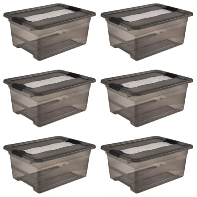 keeeper Cornelia 6 x Storage Boxes with Lid and Sliding Closure, 39.5 29.5 17.5 cm, 12 L, Crystal Grey