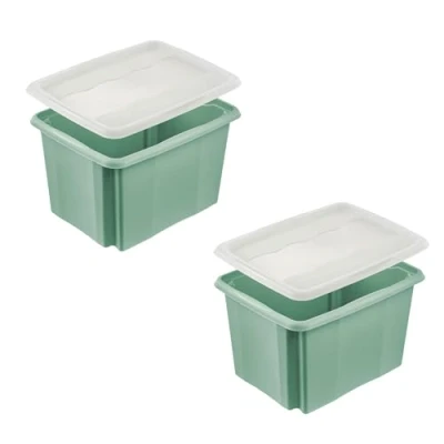 keeeper emil 2 x Storage Box with Turning/Stacking System Lid Emilia 30 L Nordic Green