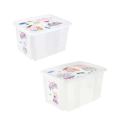 keeeper Karolina 2 x Peppa Pig Storage Box with Lid, Rotating and Stackable for Kids, 30L + 45L, Transparent