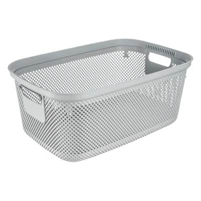 Handy laundry basket with practical side handles and generous capacity - Ideal for sorting, collecting and transporting dry and wet laundry Air-permeable design in a decorative knitted look and delicate pastel colours - No unpleasant odours with damp laundry thanks to improved air circulation Sturdy and space-saving construction without sharp edges, Easy to clean: Wipe with a damp cloth or sponge Made in Europe, High-quality, stable plastic (PP), No release of harmful substances, Easy to clean: Wipe with a damp cloth or sponge Scope of delivery: 1 Bosse laundry basket, dimensions: 53 x 34.5 x 22.5 cm, Weight: 0.63 kg, colour: Nordic Grey, Item no.: 1114813000000, Manufacturer: keeeper
