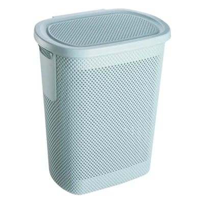 Robust laundry box with large capacity and hinged lid - Ideal for sorting and collecting dirty laundry in the bathroom or bedroom Air-permeable design in a decorative knitted look - No unpleasant odours with damp laundry thanks to improved air circulation Sturdy and space-saving construction without sharp edges, Easy to clean: Wipe with a damp cloth or sponge Made in Europe, High-quality, stable plastic (PP), No release of harmful substances, Easy to clean: Wipe with a damp cloth or sponge Scope of delivery: 1 laundry box Arne, dimensions: 47.5 x 36 x 57.5 cm, Weight: 1.485 kg, colour: Nordic Blue, Item no.: 1114968000000, Weight: 3.4833037396 Pounds, Manufacturer: keeeper