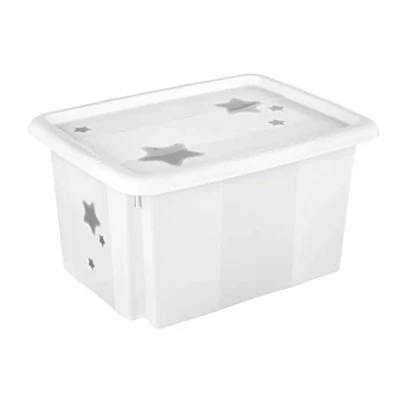 keeeper Stars Storage Box with Lid, Stackable and Rotatable, For Children, 15 L, Karolina, Nordic White