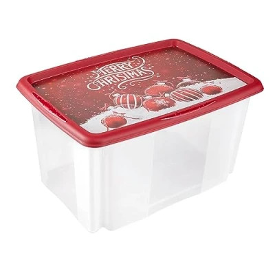 keeeper Storage Box with Christmas Motif and Lid, Stackable, 55x39.5x29.5 cm, 45 L, Wika, Red / Transparent