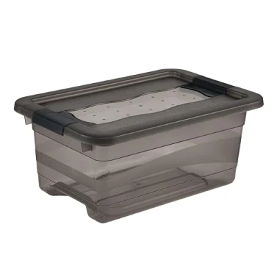 keeeper Storage Box with Lid and Sliding Closing Mechanism, 4 L, Transparent, Crystal Grey