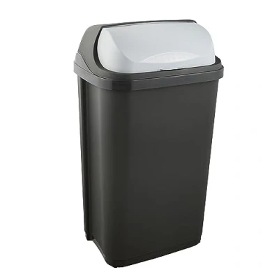 Sturdy waste bin with practical roll-top lid, For bin bags with a volume of 60 litres Convenient waste disposal: easy-to-open roll-top lid with a pleasant feel, Subtle design with contrasting lid holder Easy to clean thanks to completely removable lid, Wipe with a damp cloth or sponge Made in Europe, High quality, sturdy plastic (PP), BPA, plasticiser and pollutant-free Contents: 1x Rasmus waste bin with roll-top lid, 10455, Dimensions (LxWxH): 39x29.5x67.5cm, Capacity: 50 L, Colour: graphite grey