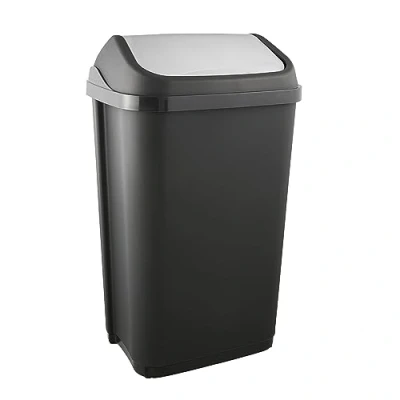 Sturdy waste bin with practical swing lid, For bags with a volume of up to 60 litres Convenient waste disposal: easy-to-open swing lid with a pleasant feel, Subtle design with contrasting lid holder Easy to clean with removable lid and lid holder, Wipe with a damp cloth or sponge Made in Europe, High quality, sturdy plastic (PP), BPA, plasticiser and pollutant-free Contents: 1x Swantje waste bin, 10308, Dimensions (LxWxH): 38.5x29x66 cm, Capacity: 50 L, Colour: graphite grey