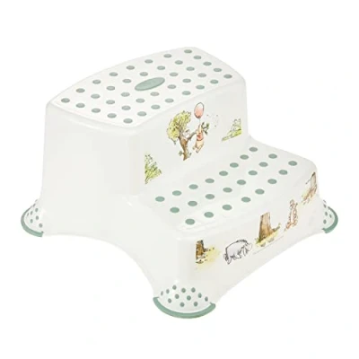 Two-step Winnie the Pooh step stool for children aged approx. 3 to approx. 14 years, For safe climbing up and sitting down - Ideal for reaching the washbasin or the toilet Childproof: No tilting or slipping thanks to anti-slip design with rubberised feet and safe, secure rubber standing surface Pooh the bear motif firmly integrated in the material, Matches other keeeper products in the Winnie the Pooh series, Easy to clean: Wipe clean with a damp cloth or sponge Made in Europe, High quality, sturdy plastic (PP/TPE), No pollutant release, Resilient to max. 120 kg, Lightweight and easy to carry Contents: 1 Step stool Igor, Two-step, Winnie the Pooh decor, 1003210023800, Dimensions (LxWxH): 40 x 37 x 21 cm, First step: 31 x 18 x 10.5 cm, Second step: 29 x 15 x 21 cm, Weight: 782 g, Colour: white