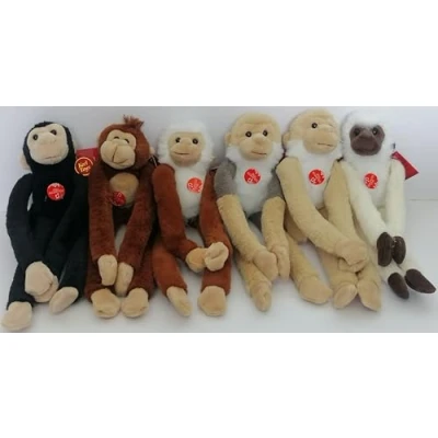 Whimsical Design: Adorable plush monkey toys with long, dangling limbs and soft, cuddly bodies in various colours with hook and loop hand fastenings. Interactive Fun: Chattering motion activated by pressing belly, providing engaging amusement for children. Chest contains sound box. Assortment: Set includes six distinct monkeys in variations of white, beige, orange, brown, black, and cream shades - may vary. Size: Each plush monkey measures approximately 47 centimetres in length for a substantial, huggable size. Surprise Element: One monkey is randomly selected from the assortment when purchased, adding an element of surprise., Manufacturer: Keel Toys