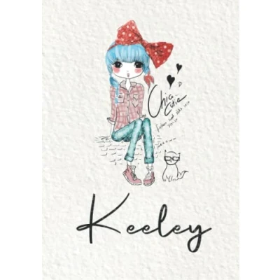 Keeley: Notebook A5 Personalized name Keeley Birthday gift for women, girl, mom, sister, daughter Cover: Fashion girl with cat 120 lined pages journal, small size (ca. 6 x 9 inches)