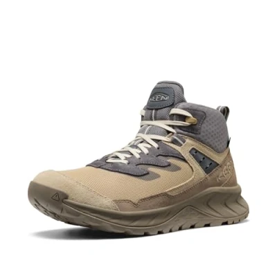 KEEN Men's Hightrail Mid Height Durable Lightweight Breathable Leather Waterproof Hiking Boots, Safari/Steel Grey, 9