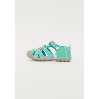 Keen Seacamp Walking sandals for kids, Size: 1, Bright aqua/giggle pink shoes
