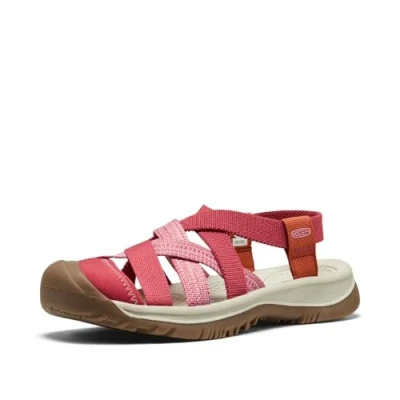 WATER-RESISTANT: Washable polyester webbing featuring quick dry lining for active use in and out of the water; Stretchy crisscross straps offer a foot-hugging fit SUPPORT: Elastic gore provides a secure fit while offering a quick and easy way to get them on and off; Shock-absorbing foam insole with arch support for all-day comfort FIT & COMFORT: Built on a women specific foot form that is wider than the industry norm for improved fit and comfort; High abrasion rubber tip for added durability and protection TRACTION & TOE PROTECTION: Wave grip pattern provides superior grip on slippery and wet terrains; Non-marking KEEN.FUSION rubber outsoles leave no imprint when walking indoors or boats CARE TIPS: KEEN water sandals are machine washable; Use a small amount of detergent wash on gentle cycle and air dry