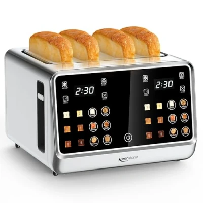 Keenstone Toaster 4 Slice, Digital Smart with TouchScreen, Dual Control Panel, Single Slot Toasting, Timer, Reheat & Defrost for Bagels, Bread, Waffles, Stainless Steel (Silvery, 4)