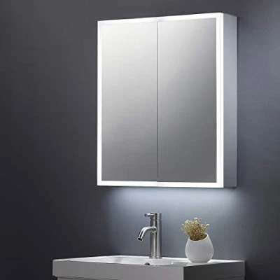 Keenware 600x700 LED bathroom twin door mirror cabinet Led mirror lights with cabinet down lights & 3 shelves Double sided mirror with soft close doors Shaver socket for razors & toothbrushes Ir sensor on/ off light control Ce certified & IP44 rated Rohs/ EMC & LVD compliant, Weight: 45.635688234 Pounds, Manufacturer: Keenware
