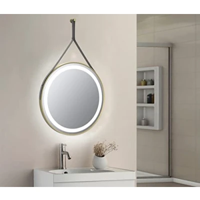 Keenware KBM-360 Midas Round LED Brushed Brass Framed Bathroom Mirror With Hook & Loop; 600mm