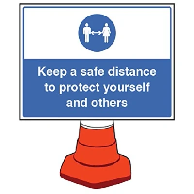 Keep a safe distance cone sign 600x450mm (cone not included)