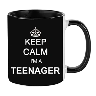 Keep Calm I'm A Teenager Mug Cup Gift Retro, Ceramic for Teenager, Turning 13 Teenage Girls Or Boys (Black Inside and Handle)
