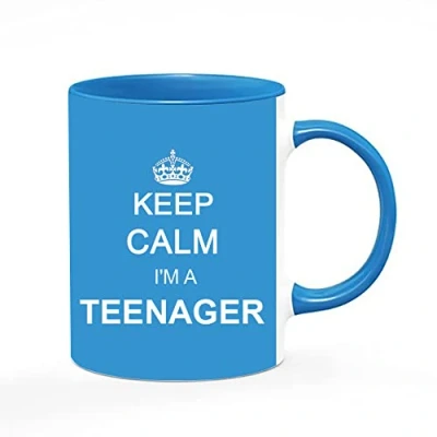 Keep Calm I'm A Teenager Mug Cup Gift Retro, Ceramic for Teenager, Turning 13 Teenage Girls Or Boys (Blue Inside and Handle)