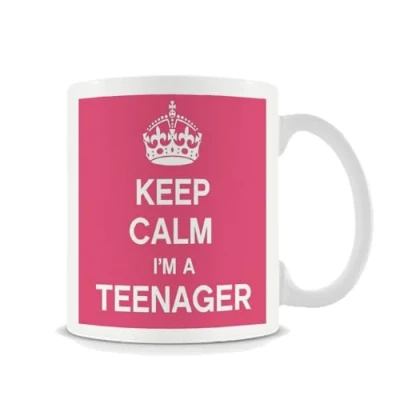Keep Calm I'm A Teenager Mug Cup Gift Retro, Ceramic for Teenager, Turning 13 Teenage Girls Or Boys (Pink)