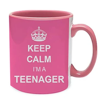 Keep Calm I'm A Teenager Mug Cup Gift Retro, Ceramic for Teenager, Turning 13 Teenage Girls Or Boys (Pink Inside and Handle)