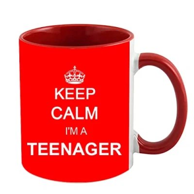 Keep Calm I'm A Teenager Mug Cup Gift Retro, Ceramic for Teenager, Turning 13 Teenage Girls Or Boys (Red Inside and Handle)
