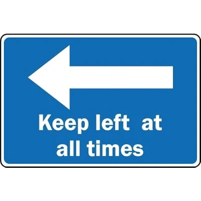 Keep Left at All Times Big Arrow Safety Sign 1mm Plastic (200mm x 150mm)