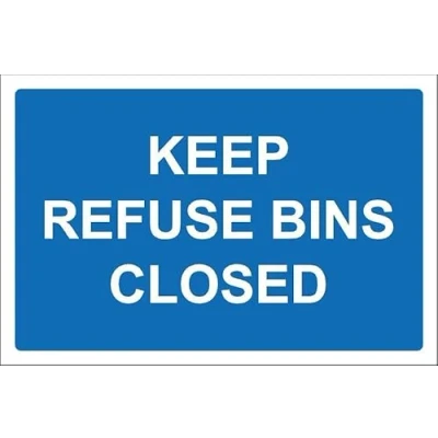 Keep refuse bins closed. 1mm flexible Plastic sign. Digitally printed for extra durability. Drill and screw in position or use double sided tape to mount onto suitable surface. All signs come with a 5-year warranty. All our signs are UV resistant meaning they will not fade in sunlight. Suitable for indoor & outdoor use.