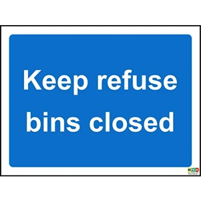 Keep refuse bins closed sign Self adhesive sticker 200mm x 150mm Remove backing film and apply to dry, smooth, oil free surface. Digitally printed and laminated for extra durabillity