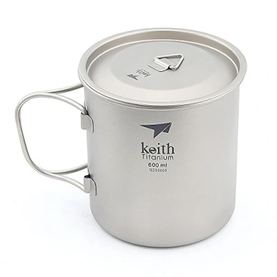 Keith 300ml/900ml Titanium Cup Outdoor Tableware Camping Travelling Foldable Handle (600ml)