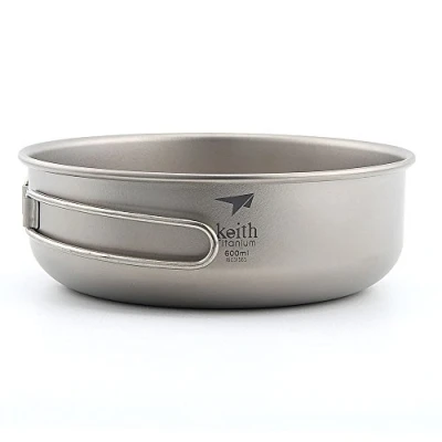Keith Titanium Bowl 300ml 600ml Ultralight Camping Tableware Picnic Bowls Portable Folding Handle (Ti5326 600ml)