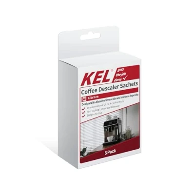 KEL Coffee Machine Descaler Sachets 5 x 50g Fast Acting Limescale Remover Eco Conscious Descaling Powder For Espresso Pod Bean to Cup Machines