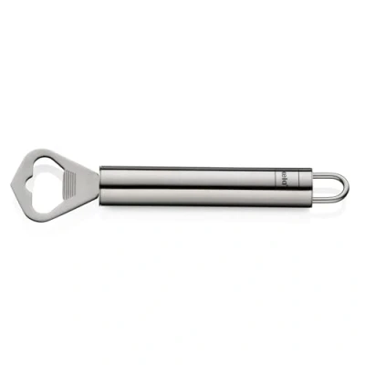 With the RONDO bottle opener, any bottle can be opened easily thanks to good power transmission. It is also a can puncher with a metal spike. This is used to punch a hole in the lid of a can of condensed milk The beer and bottle opener is made of high-quality 18/10 stainless steel and is therefore odourless and tasteless. It is dishwasher-safe so that it can be easily cleaned in the dishwasher after use The small, practical detail of the beer opener: the hanging loop on the handle allows it to be stored on a hanging rail with a hook. The handy handle ensures a secure grip when opening kela, a medium-sized company with 120 years of tradition, at home in the Swabian Alb. A large selection of high-quality products for the kitchen and bathroom to make you feel at home Scope of delivery: 1x stainless steel bottle and beer opener (item no. 19221), length 16 cm. The RONDO kitchen series also includes over 40 other practical kitchen gadgets
