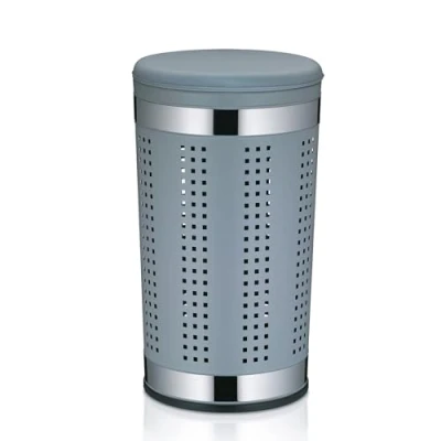 Stylish storage: the SEVILLA metal laundry box allows you to collect dirty laundry in a well-ventilated area and can also be used as a stool thanks to its padded lid Thanks to the ventilation holes around the laundry chest, any remaining moisture can escape. This prevents bacteria and germs from multiplying and unpleasant odours from developing The round shape of the laundry bin offers sufficient space and the rubberised underside provides optimum stability. The lid can be opened completely and keeps things visually organised kela, a medium-sized company with 120 years of tradition, at home in the Swabian Alb. A large selection of high-quality products for the kitchen and bathroom to make you feel at home Scope of delivery: 1x laundry basket light grey with 2 side handles (item no. 21819), dimensions W 30.5 x H 60.5 cm, capacity 46 litres. Easy to clean with a damp cloth. Available in 2 other versions