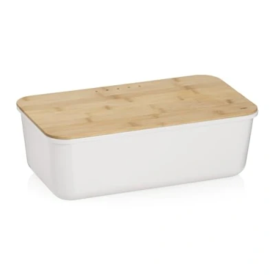 kela bread box white with ventilation holes 38x21x12.5cm, FSC bamboo lid as cutting board, plastic box, APART, storage