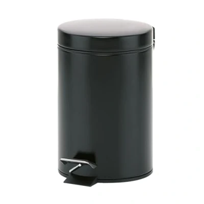 Easy disposal: with the small and compact 3-litre MONACO bathroom waste bin made of high-quality metal, the small items of everyday waste have their place in the bathroom, toilet, kitchen or office The lid of the pedal bin can be conveniently opened and closed using the non-slip pedal. The rubberised underside and the round shape of the small waste bin ensure a secure stand The removable inner bin made of black plastic can be easily removed and emptied using the carrying handle. A bin liner can be placed inconspicuously around the rim kela, a medium-sized company with 120 years of tradition, at home in the Swabian Alb. A large selection of high-quality products for the kitchen and bathroom to make you feel at home Scope of delivery: 1x bathroom waste bin small MONACO black (item no. 20903), capacity 3 litres, dimensions H 26 cm, ∅ 17 cm. Easy to clean with a damp cloth and washing-up liquid. Available in other colours