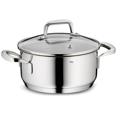 The FLAVORIA low roasting pan made of stainless steel with a glossy finish is ideal for searing and braising meat, aromatic stews and savoury stews, as the liquid is reduced more quickly Thanks to optimum heat distribution and durable materials, dishes are particularly tender and full of flavour. The energy-saving base of the saucepan also ensures perfect grip The internal scaling offers precise dosing of liquids without an additional measuring jug - less decanting and remeasuring is necessary. The ergonomic stainless steel handles provide a secure grip and the pouring rim ensures drip-free pouring The stainless steel cooking pot is suitable for gas, oven, glass ceramic, electric and induction hobs. The glass lid with outlet valve prevents excessive pressure build-up and protects against boiling over Scope of delivery: 1x frying pan 16cm with lid (height 10 cm, 1.2 L, base ∅ 14.5 cm) FLAVORIA (item no. 10171), material: 18/10 stainless steel, heat-resistant glass, ovenproof up to 220°C (with lid up to 180°C). Dishwasher safe