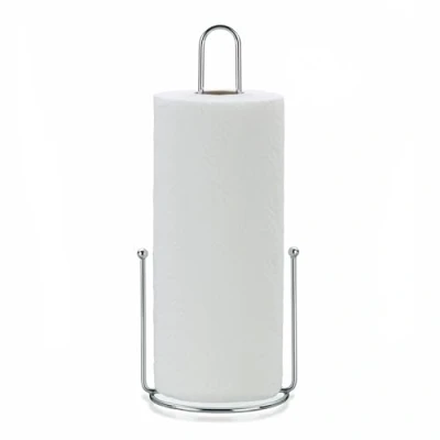 With its simple design, the purist kitchen roll stand fits into any kitchen ambience. The kitchen roll is always ready to hand and tear off thanks to the stand. The kitchen paper is fixed to the holder with two rods as unwind stoppers so that the paper can be torn off effortlessly with one hand and at the same time prevents the kitchen paper from unwinding unintentionally Thanks to its small diameter, the kitchen roll holder fits on any small kitchen worktop kela, a medium-sized company with 120 years of tradition, at home in the Swabian Alb. A large selection of high-quality products for the kitchen and bathroom to make you feel at home Scope of delivery: 1x kitchen roll holder metal (item no. 17582), height 33 cm, Ø 12 cm, supplied without kitchen roll. Cleaning with a damp cloth recommended