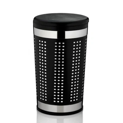 Stylish storage: the SEVILLA metal laundry box allows you to collect dirty laundry in a well-ventilated area and can also be used as a stool thanks to its padded lid Thanks to the ventilation holes around the laundry chest, any remaining moisture can escape. This prevents bacteria and germs from multiplying and unpleasant odours from developing The round shape of the laundry bin offers sufficient space and the rubberised underside provides optimum stability. The lid can be opened completely and keeps things visually organised kela, a medium-sized company with 120 years of tradition, at home in the Swabian Alb. A large selection of high-quality products for the kitchen and bathroom to make you feel at home Scope of delivery: 1x laundry basket black with 2 side handles (item no. 21818), dimensions W 30.5 x H 60.5 cm, capacity 46 litres. Easy to clean with a damp cloth. Available in 2 other versions