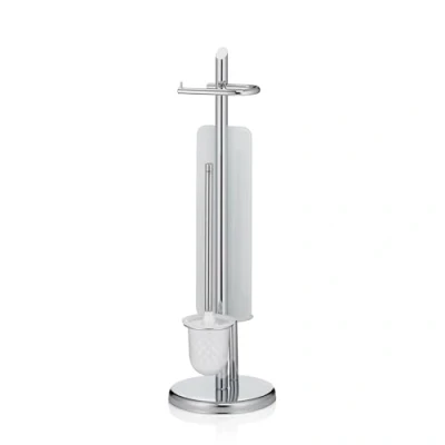 3in1: the modern KEN toilet set made of chrome-plated metal (glossy) with toilet brush bowl, paper roll holder and spare roll holder combines functionality with a simple design and scores with its flexibility The standing toilet brush set (with stainless steel handle and replaceable LA BROSSE brush head) and toilet paper are always stored neatly and hygienically. The transparent tinted glass disc provides visual separation from the 3 spare rolls The heavy base plate ensures optimum stability and prevents it from tipping over or wobbling. This means it can be placed anywhere in the bathroom kela, a medium-sized company with 120 years of tradition, at home in the Swabian Alb. A large selection of high-quality products for the kitchen and bathroom to make you feel at home Scope of delivery: 1x WC brush set KEN glossy (item no. 20537), dimensions H 73 cm, Ø 22 cm. Easy cleaning thanks to removable plastic container, Weight: 6.4815905028 pounds, Manufacturer: Kela