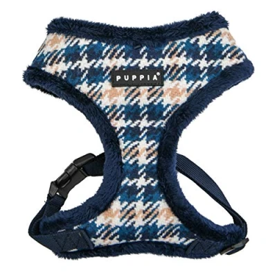 Basic harness style as “Harness A” Checkered pattern and solid schemed Adjustable chest belt with a buckle PUPPIASMART TAG pendant(QR Code only) is included Size: Small - 10.2" Neck, 12.6"~17.3" Chest