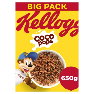 Kelloggs Coco Pops 650g is a delicious, chocolate-flavoured breakfast cereal made with toasted rice, fortified with vitamins and iron, and free from artificial colours and sweeteners. Enjoy it with cold milk for a tasty, nutritious start to the day.