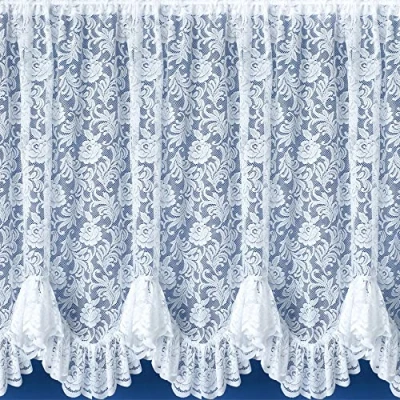 kellyuk Victorian Floral Leaf Net Curtain With Frilled Flounce In A Bright White Finished Heavy Thick Lace Scalloped Bottom 4.5 Metres Wide x 27" (68cm) Drop