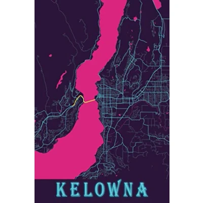 Kelowna: 6x9 Lined Journal Memory Book Travel Diary To Record Your Thoughts Graduation Gift Teacher Gifts Neon Map For People Who Love Kelowna Canada British Columbia