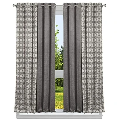 Kelvin Geometric Window Curtain Set, Polyester, Grey, 37x84