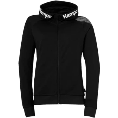 Sporty: sports hooded jacket with zip garage on the collar in a modern design – with printed Kempa lettering, available in sizes for children and adults. Perfect fit: the sweatshirt has a tailored cut and offers a perfect fit for any body. Suitable for all sports activities such as handball, volleyball etc. or as a leisure jacket. Breathable: thanks to the elastic material, the hooded jacket offers a light and comfortable fit. Features: the raglan sleeves complete the core design. In addition, the jacket has two zip pockets. Material: 85% cotton and 15% viscose