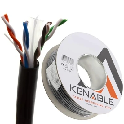 kenable External CAT6 Outdoor Use COPPER Ethernet Network Cable Reel UTP 100m Black [100 metres] for Networking, POE, CCTV and Gate Control.