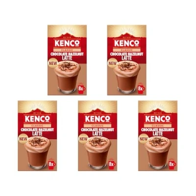 Kenco Chocolate Hazelnut Latte Instant Coffee Sachets 8x16.8g (Pack of 5, Total 40 Drinks)